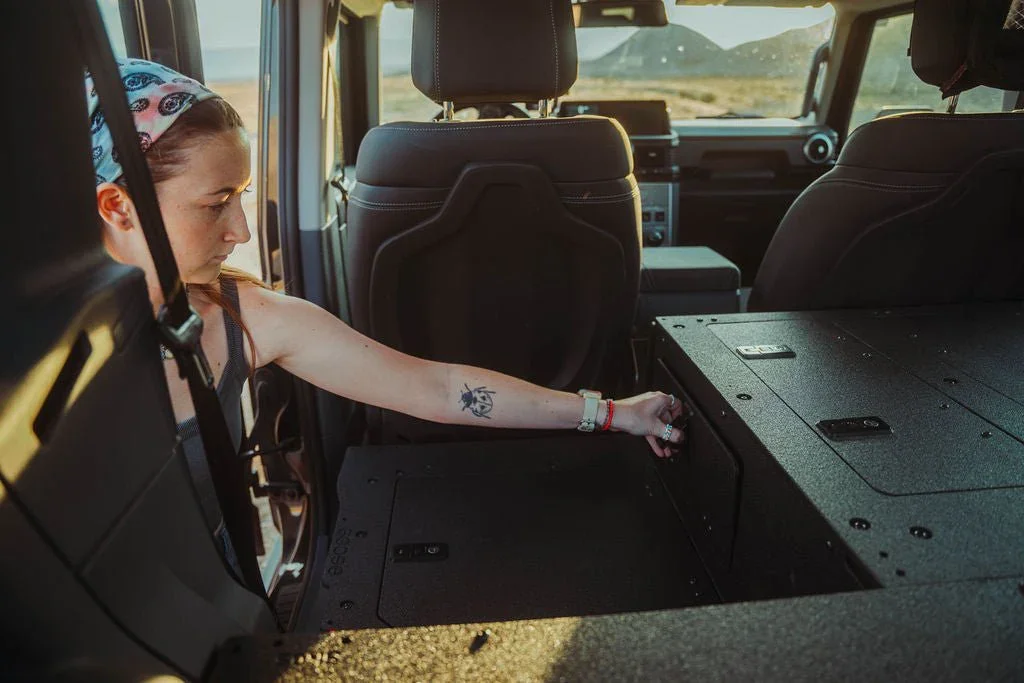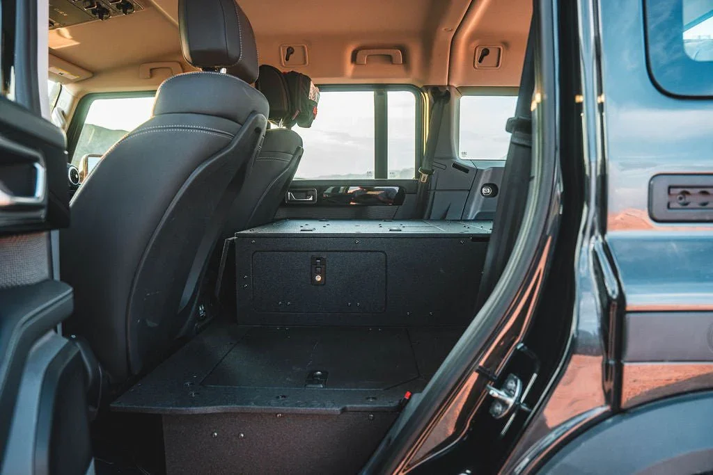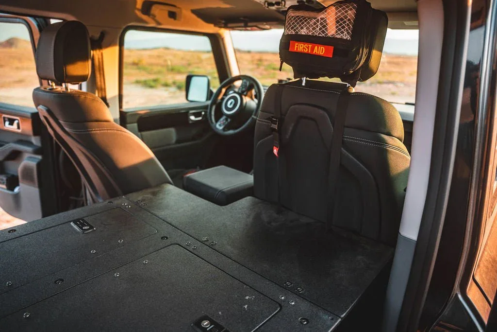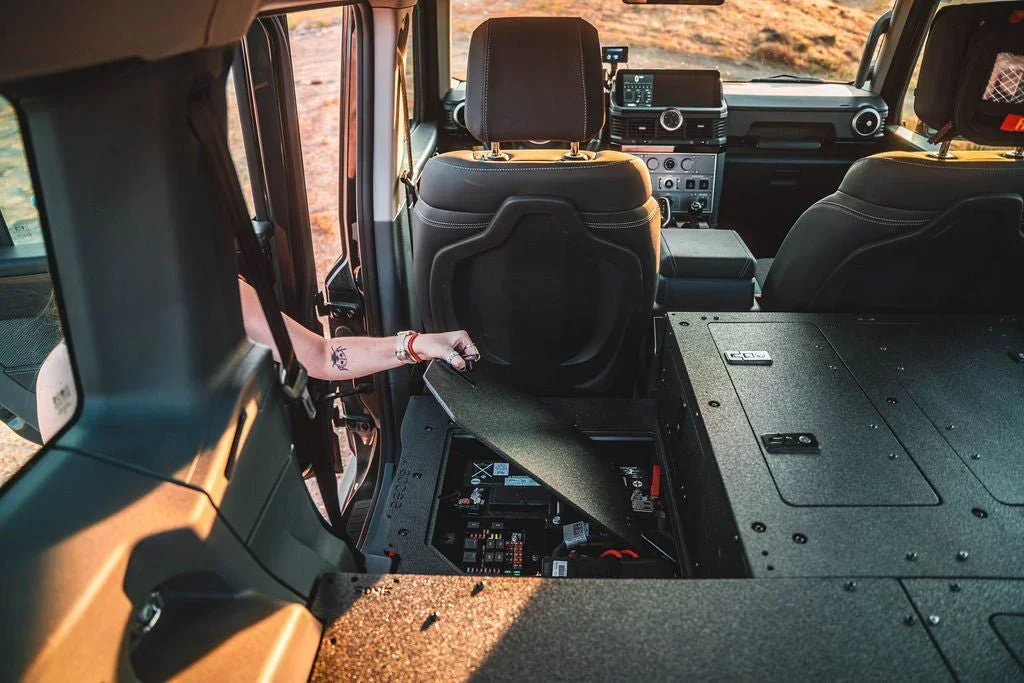 Maximize the functionality of your Ineos Grenadier Quartermaster with the Second Row Seat Delete Plate System™, engineered to provide ample storage space and compatibility with Goose Gear Modules or your own custom storage system and accessories. This 100% second-row delete requires the removal of the seat, seat frame, and the surrounding plastic trim panels that house electrical components under the factory seat.