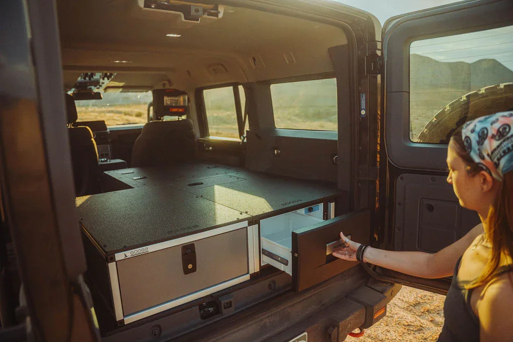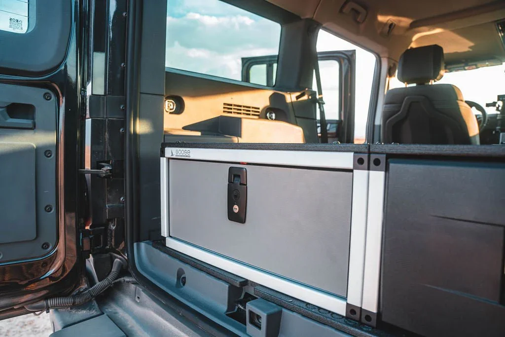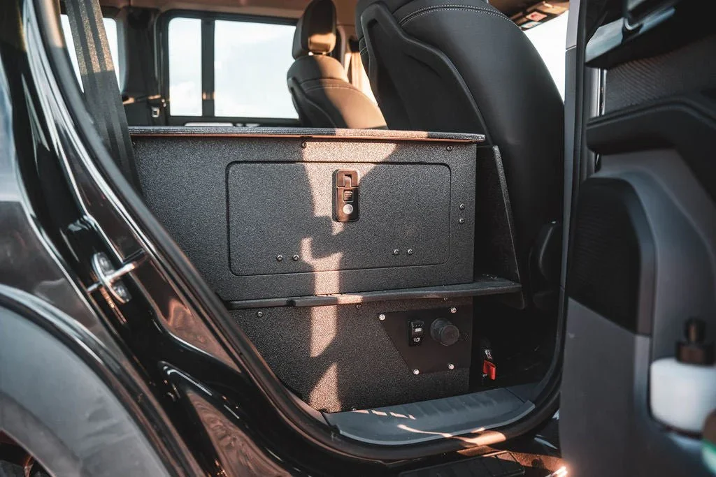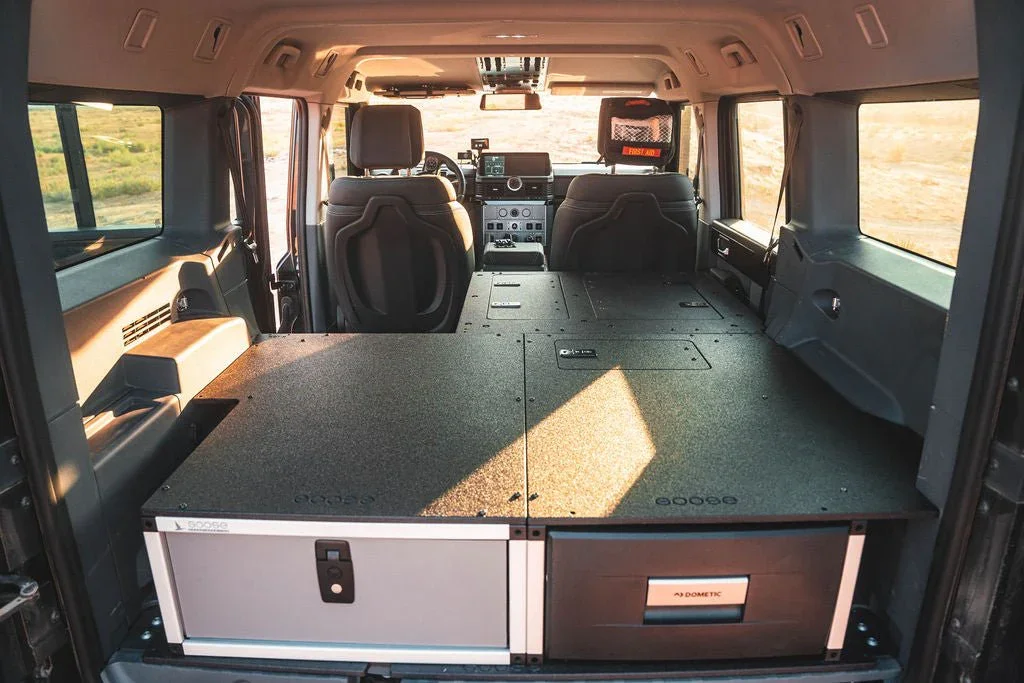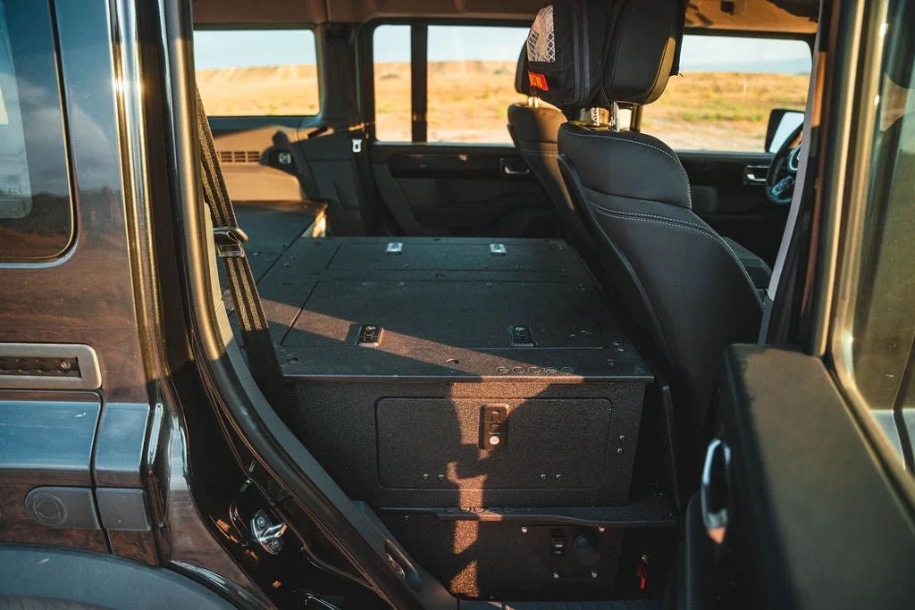 Maximize the functionality of your Ineos Grenadier Quartermaster with the Second Row Seat Delete Plate System™, engineered to provide ample storage space and compatibility with Goose Gear Modules or your own custom storage system and accessories. This 100% second-row delete requires the removal of the seat, seat frame, and the surrounding plastic trim panels that house electrical components under the factory seat.